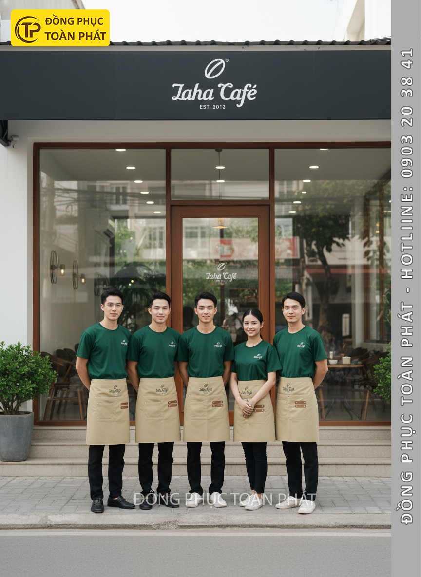 Bộ đồng phục thể hiện hình ảnh năng động, thân thiện và chuyên nghiệp của đội ngũ nhân viên Laha Café – những người luôn mang đến trải nghiệm tốt nhất cho khách hàng.