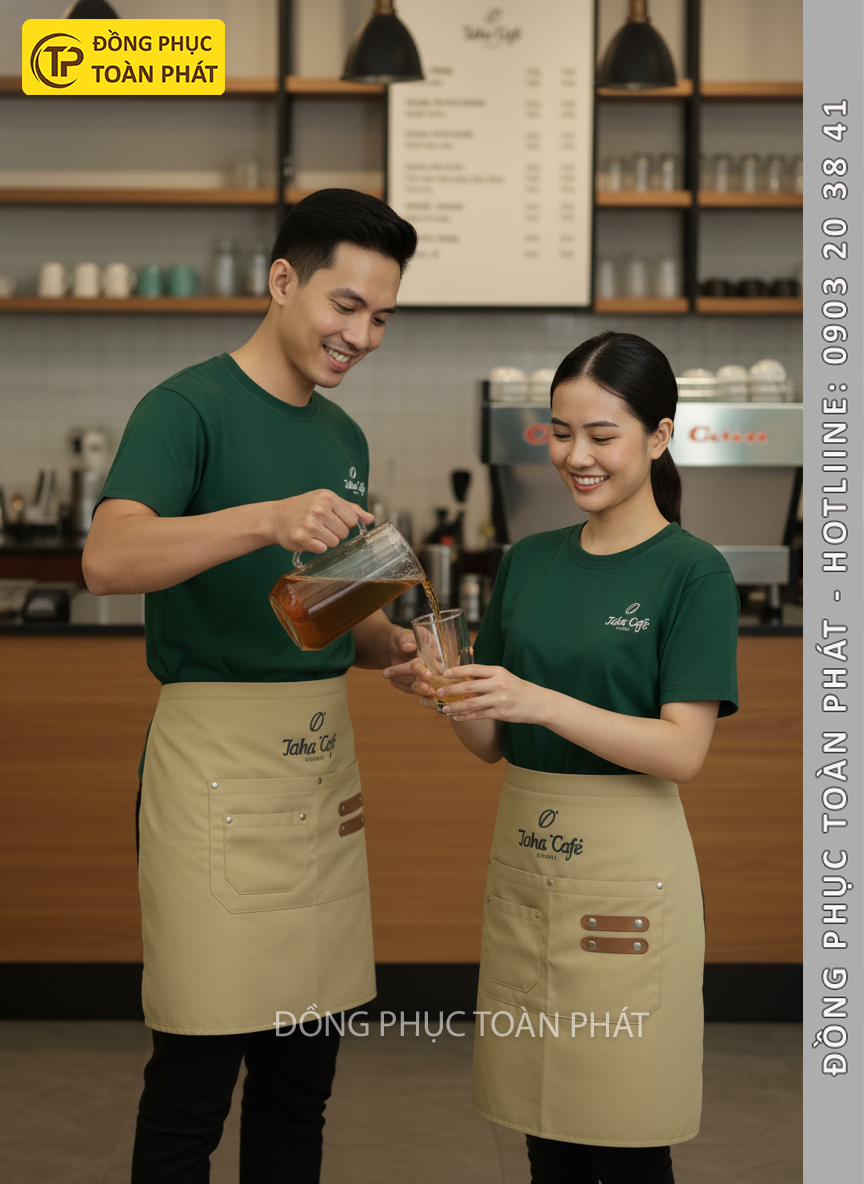 Chất liệu vải dày dặn, dễ giặt ủi, đảm bảo độ bền và giữ form tốt trong môi trường làm việc của quán cà phê.